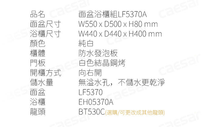 凱撒 面盆浴櫃組推薦型號 LF5370 (LF5370,EH05370A/BT530C)