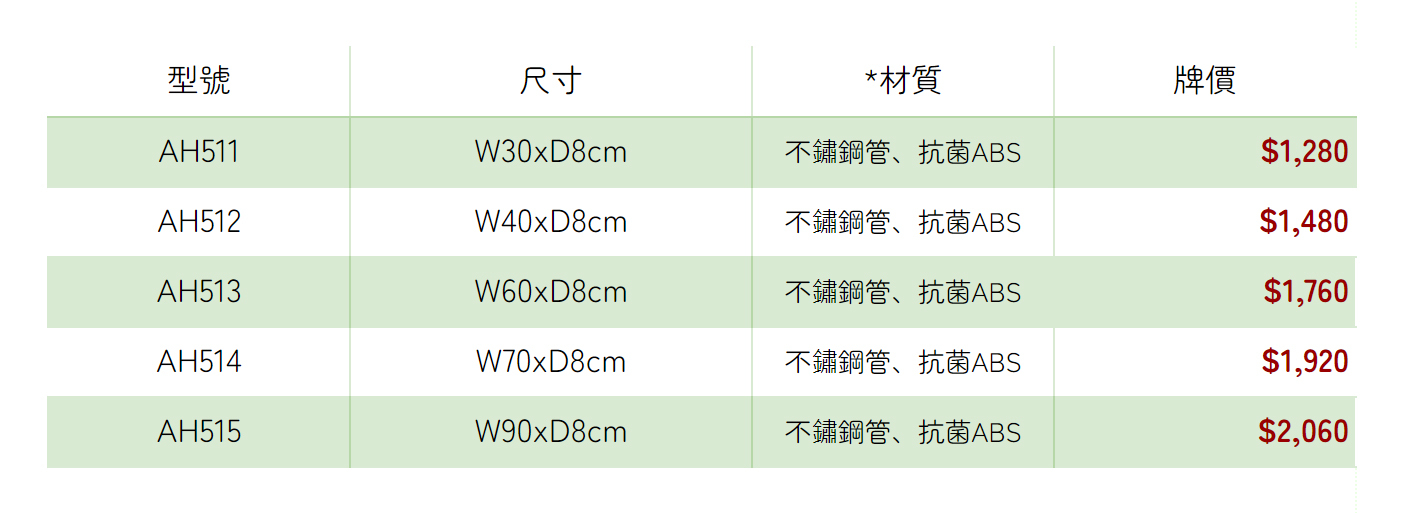 * 材質 : 不鏽鋼管、抗菌ABS