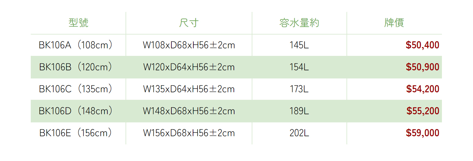 ● 尺寸齊全,挑選最適合您的浴缸。