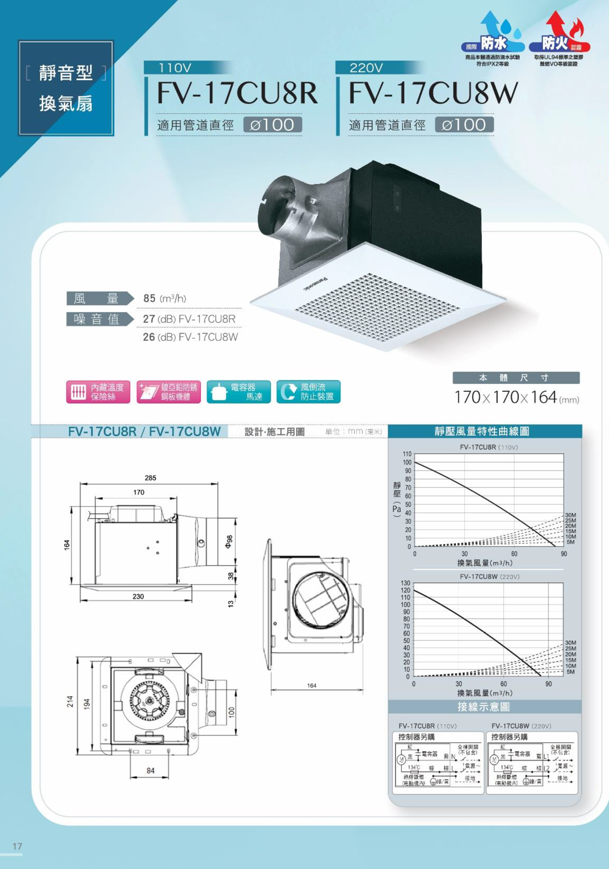 Panasonic 國際牌 換風扇推薦型號 FV-17CU8R / FV-17CU8W 靜音型換風扇