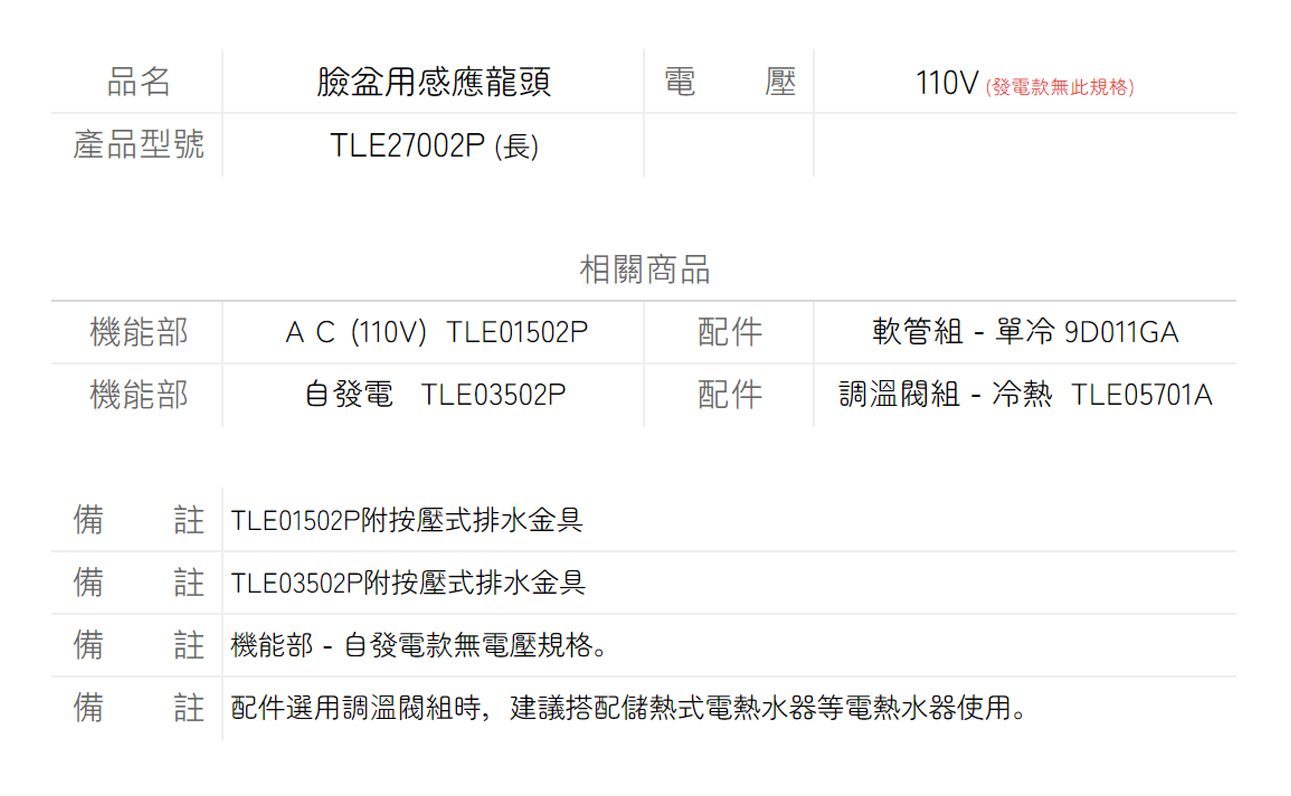 備 註TLE03502P附按壓式排水金具