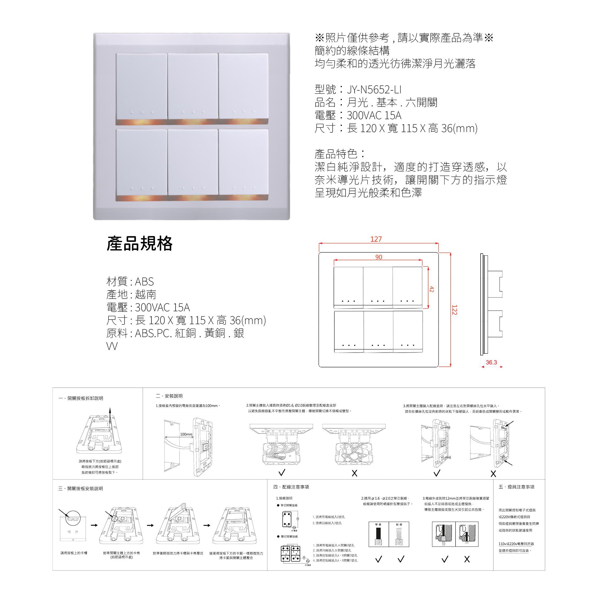 中一 月光基本款/六開關蓋板組 JY-N5652-LI