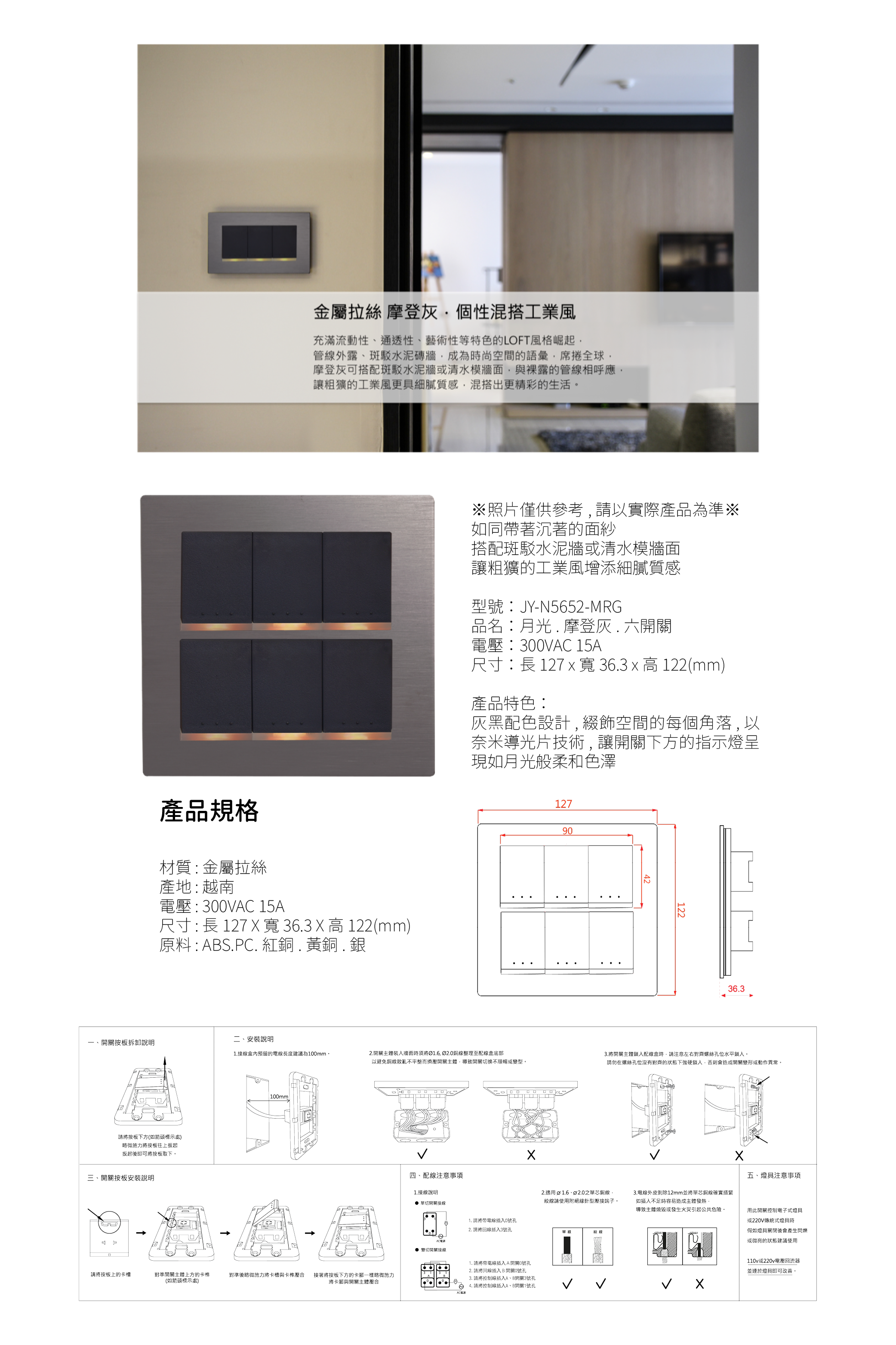 中一 月光系列摩登灰-六開關蓋板組 JY-N5652-MRG
