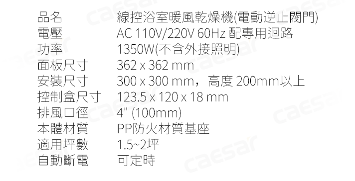 品名 遙控浴室暖風乾燥機(電動逆止閥門)