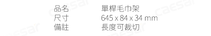尺寸 645 x 84 x 34 mm