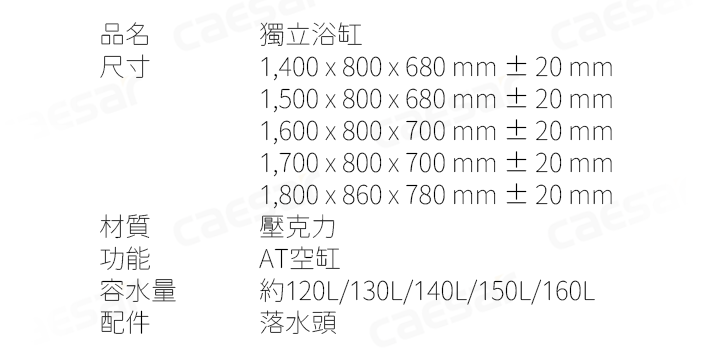 尺寸 1,400 x 800 x 680 mm ± 20 mm