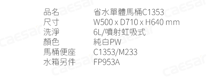品名 省水單體馬桶C1353