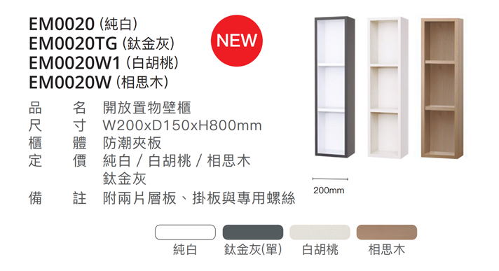 品名 開放置物壁櫃/鈦金灰/白胡桃/相思木