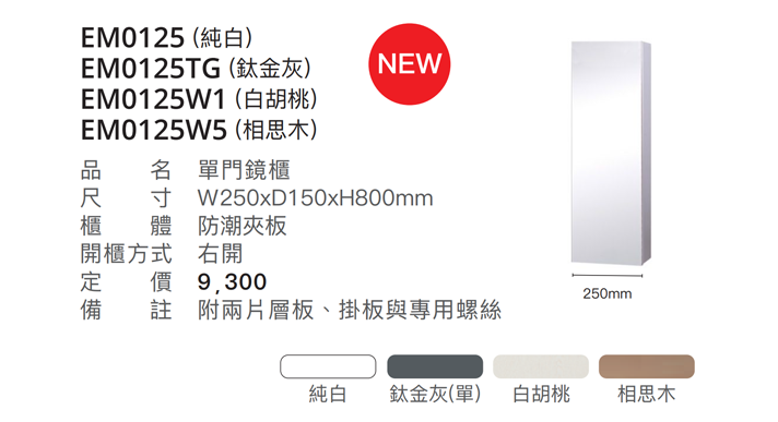 品名 單門鏡櫃/鈦金灰/白胡桃/相思木
