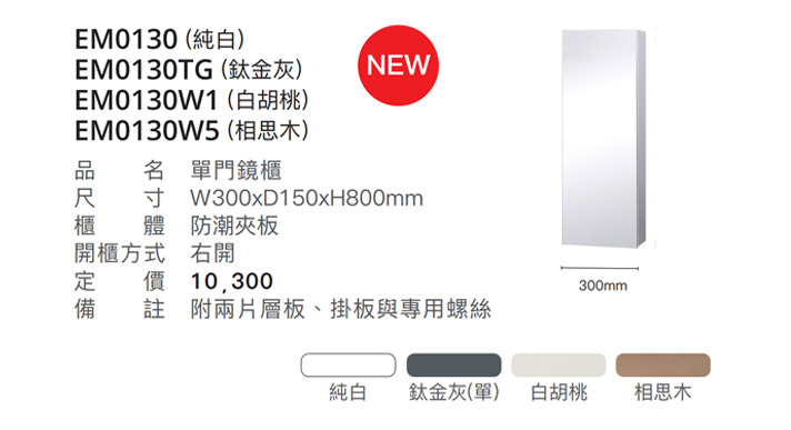 品名 單門鏡櫃/鈦金灰/白胡桃/相思木