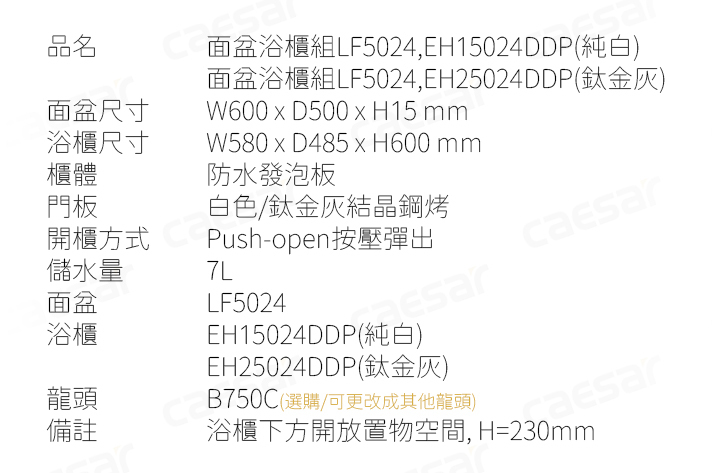 品名 面盆浴櫃組LF5024,EH15024DDP(純白)
