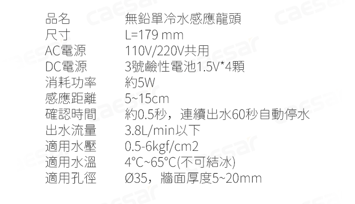 品名 無鉛單冷水感應龍頭
