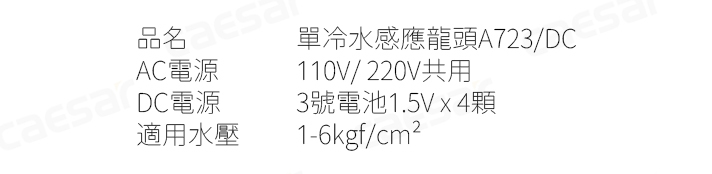 品名 單冷水感應龍頭A723/DC
