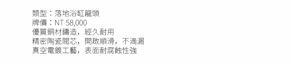 龍頭推薦型號 HMF106 落地浴缸龍頭 *