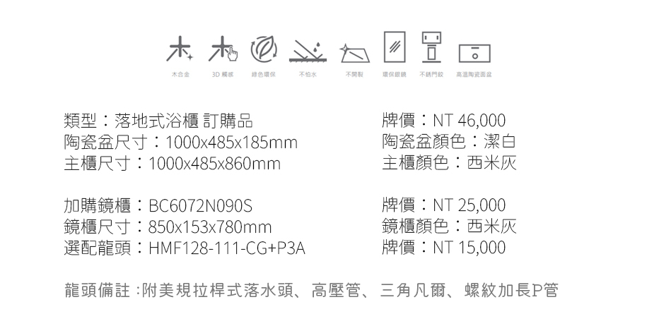 浴櫃推薦型號 BC6072-100 落地式浴櫃 *訂製品