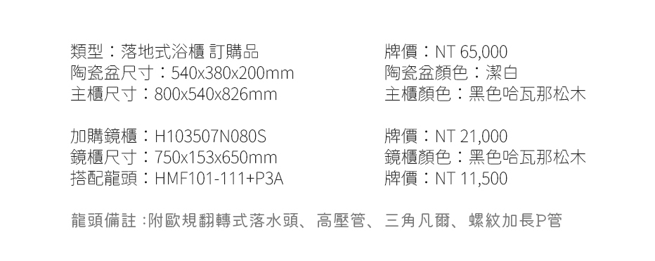 浴櫃推薦型號 HBM103507N-080 落地式浴櫃 *