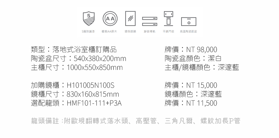 恆潔衛浴 浴櫃推薦型號 HBT-101005N-100 落地式浴櫃 *