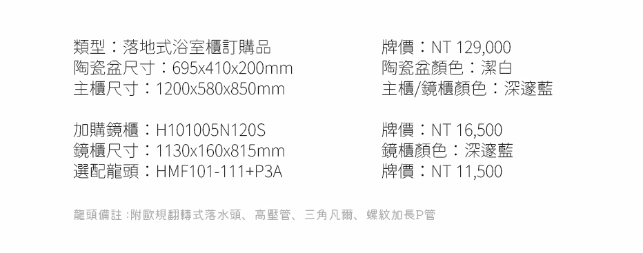 浴櫃推薦型號 HBT-101005N-120 落地式浴櫃 *