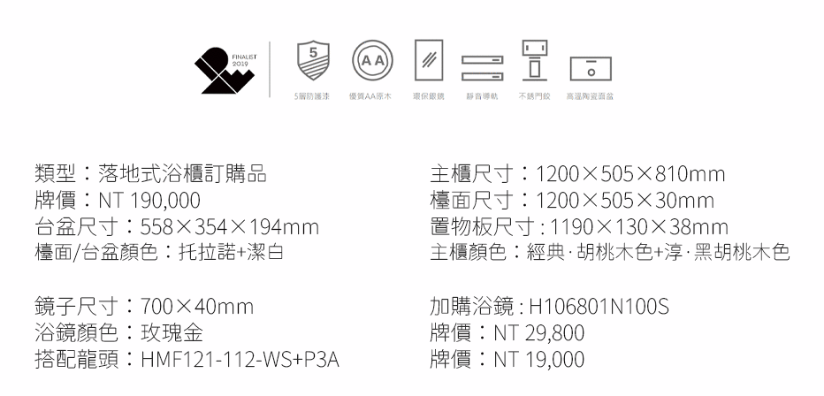 浴櫃推薦型號 HBT106801N-120 落地式浴櫃 *