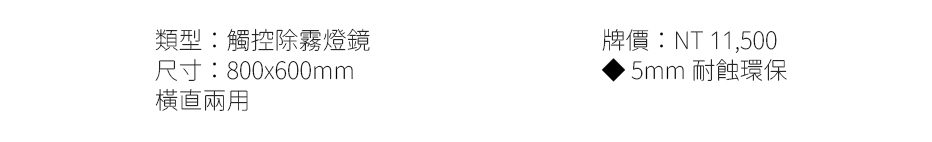 類型:觸控除霧燈鏡