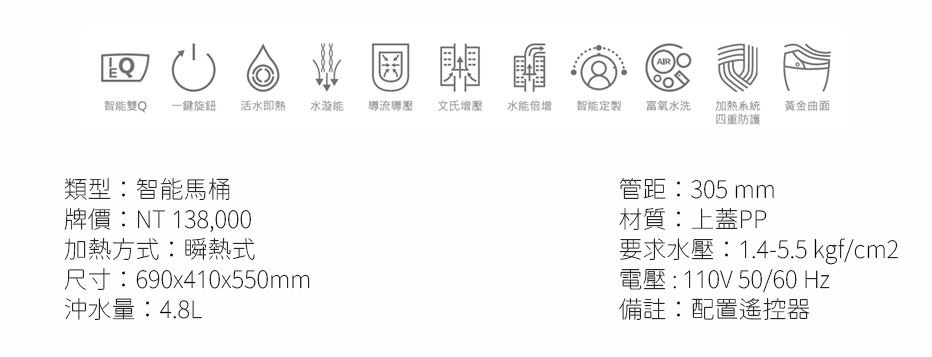 馬桶推薦型號 HCE811A01 Q8 PLUS智能馬桶 *