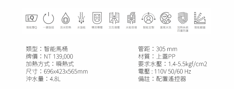 馬桶推薦型號 HCE900A01 Q9 智能馬桶 *