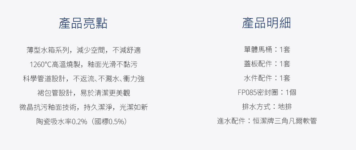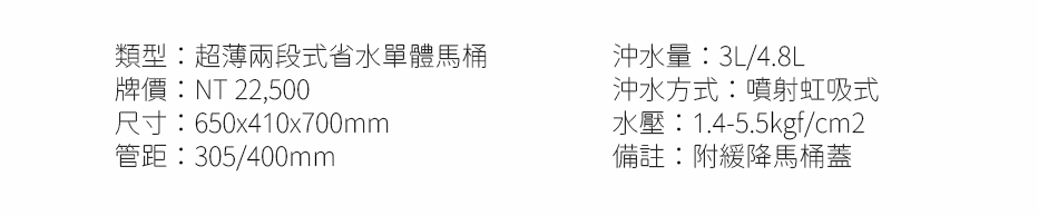 馬桶推薦型號 HC0169PT 超薄兩段式省水單體馬桶 *