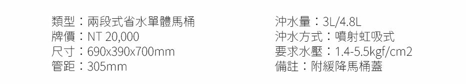 馬桶推薦型號 HC0159PT 兩段式省水單體馬桶 *