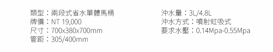 馬桶推薦型號 HC0180PT 兩段式省水單體馬桶 *