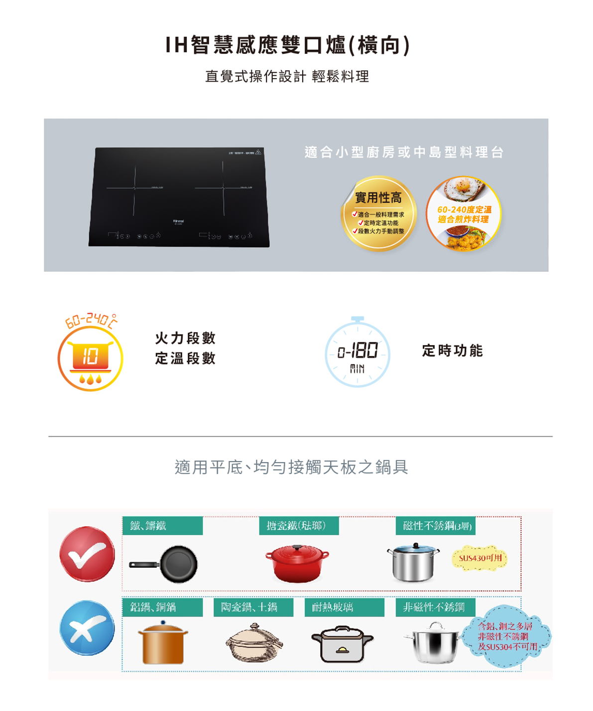 左右爐口寬幅加熱區,實用性高,適合一般料理需求